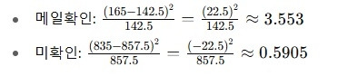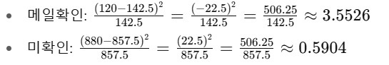 (관찰값 - 기댓값) ² / 기댓값 계산