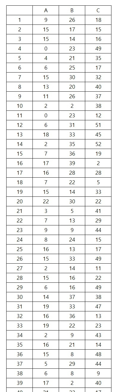 아쉽지만, 엑셀에서의 분석은 여기까지 가능합니다. 사실 A, B, C가 다른 건 알겠는데 어떤 게 어떤 것과 다른 건지 AB는 같고 AC는 다른 건지 등에 대해서 각 대안별로 확실하게 차이가 있는지를 좀 더 명확하게 알려주면 좋겠는데 그렇게 진행하는 분석을 사후분석이라고 합니다.