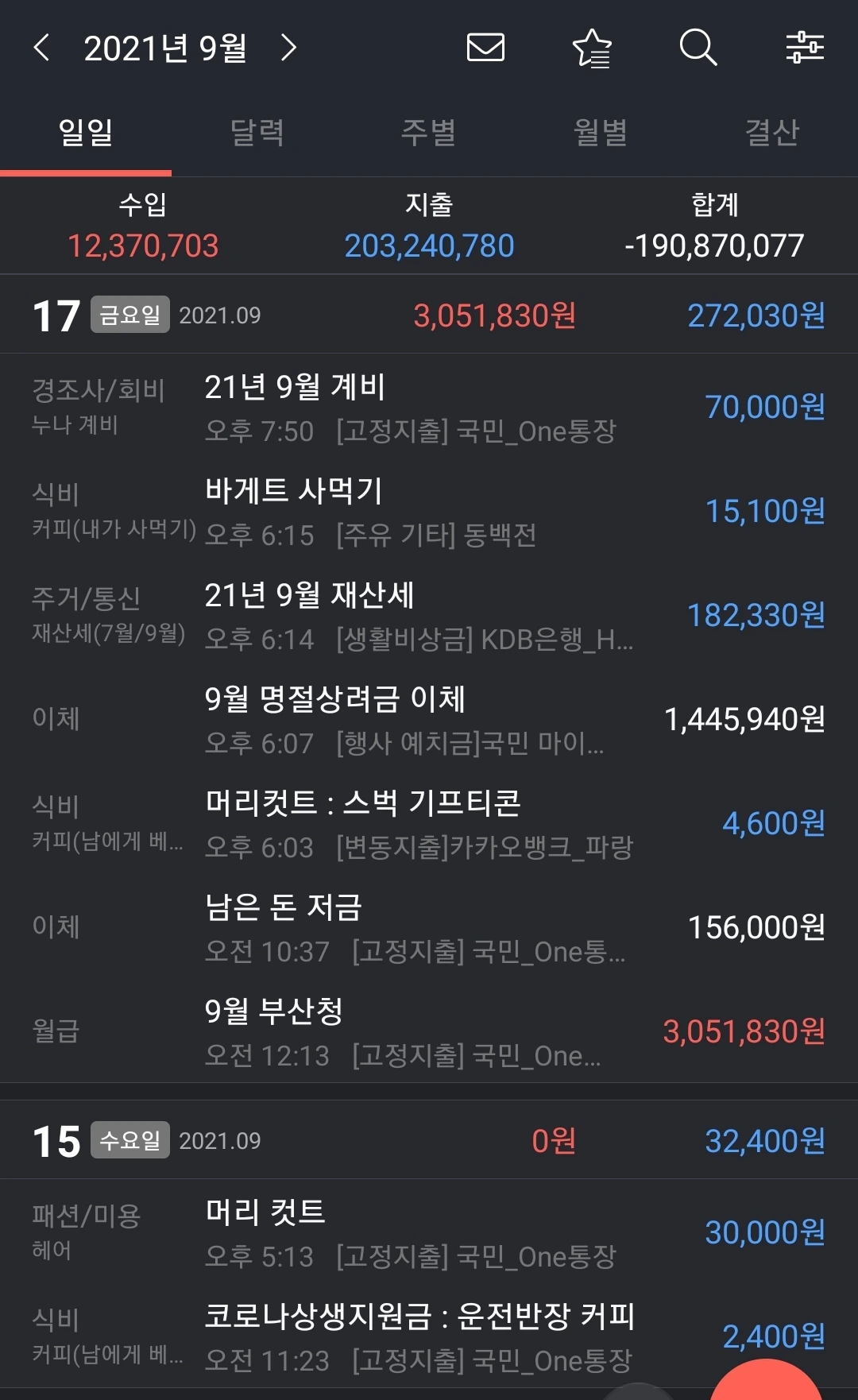 난 누나 2명과 계를 하고 있다. 부모님이 아프실 때를 대비하여 준비하는 돈이라고 할 수 있다. 달마다 각 7만 원씩 모으고 있다. 현재 약 500만 원 넘게 모은 것 같다. 아직까지 부모님이 정정하셔서 괜찮지만, 언제 아플지 알 수 없는 게 인생사 아니겠는가. 꾸준히 모아 비상시에 대비하자.