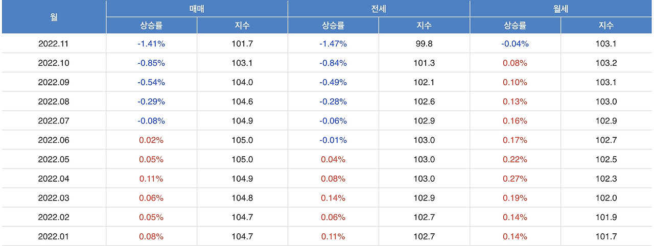 부산지역 22년1월~11월까지 월세 누적상승률내가 살고 있는 아파트를 현금흐름 기준으로 밸류에이션 평가하는 방법은 김경필 작가의 책 <오늘은 짠테크 내일은 플렉스>에 자세히 나와있다. 읽어 본 후 본인이 직접 아파트의 밸류에이션을 평가해보는 것 추천한다.