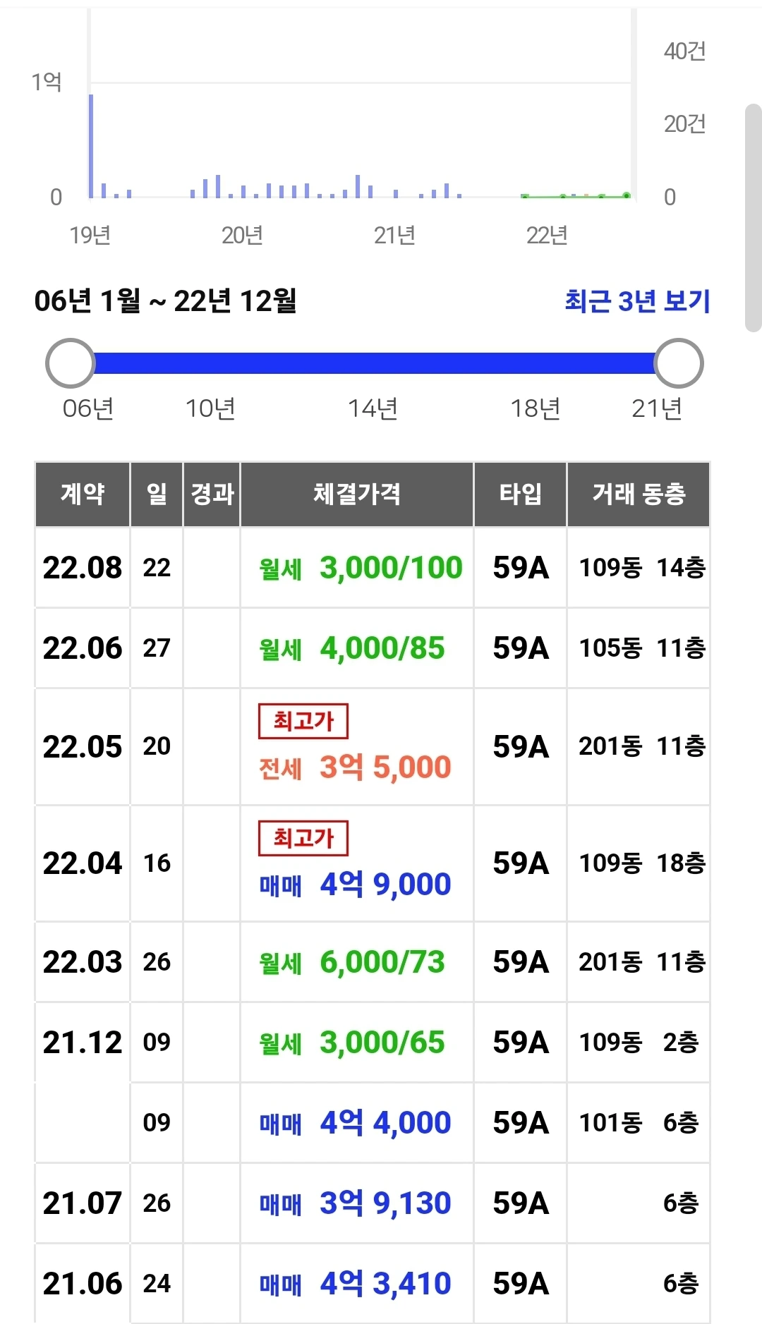 22월 8일 기준, 보증금 3000만원, 월세 100만원의 거래가 확인된다.