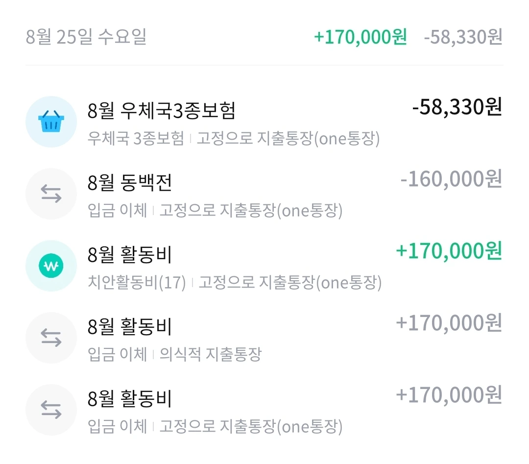 8월 우체국 3종 보험은 매달 나가는 '고정지출'이다. 변동지출이 아니라는 말씀~ㅋㅋ