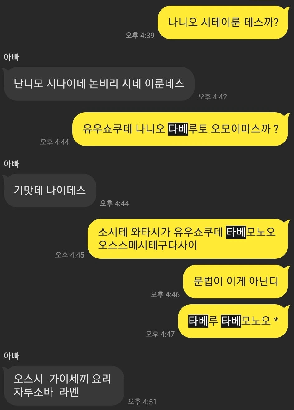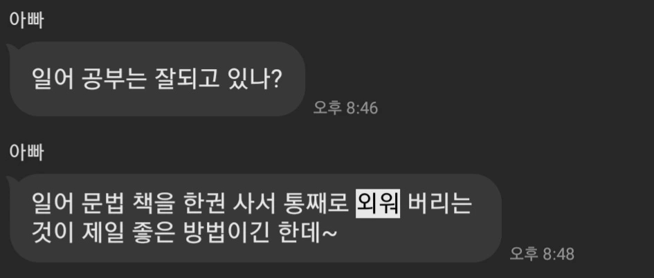 “ 아빠 내 일본어 배울 건데 좀 가르쳐도. ”