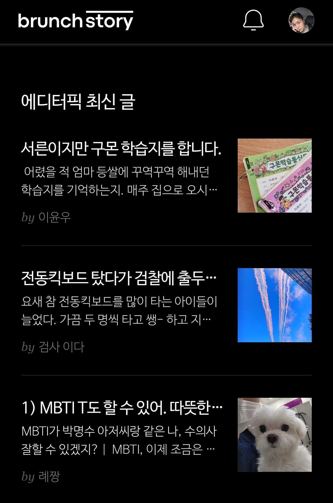 글은 수요 창출이 쉽지 않고, 많은 사람들 눈에 띄기 어려운 구조를 지니는데 브런치라는 튼튼한 플랫폼이 있어 힘이 많이 됩니다. 여기 계신 분들이 다들 예사롭지 않은 글을 쓰시는 덕에 읽는 재미도 대단하고요.