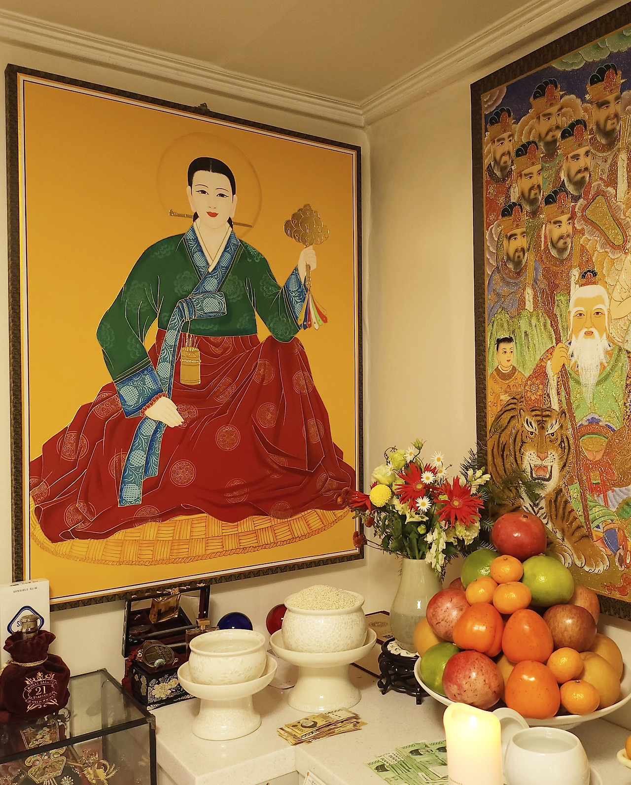 그렇다면 법당 전체를 통괄하는 대신, 5대 외조모는 어떤 분인가. 이분은 미미의 주 임무인 천황을 잡을 수 있는 대신이다. 미미와 사대가 잘 맞다. 천황 잡는 일이라면 두말할 것도 없고 대신 자리에 앉아 집안 정치와 사람 고치는 일까지 할 수 있다. 4대 조모인 넋대신이 차분히 앉아 기도 손님을 맡는다면 5대 외조모는 대신으로 천황 잡고 굿판 열어 사람 고치는 형국이다. 5대 외조모. 나는 이분에 대해서 할 말이 많다. 이분은 살아생전 거나한 기생각의 주인이다. 최근 나온 드라마 구미호뎐에 묘연각이라는 기생각이 있고, 배우 김소연을 주인으로 앞세우는데 그것과 아주 닮았다