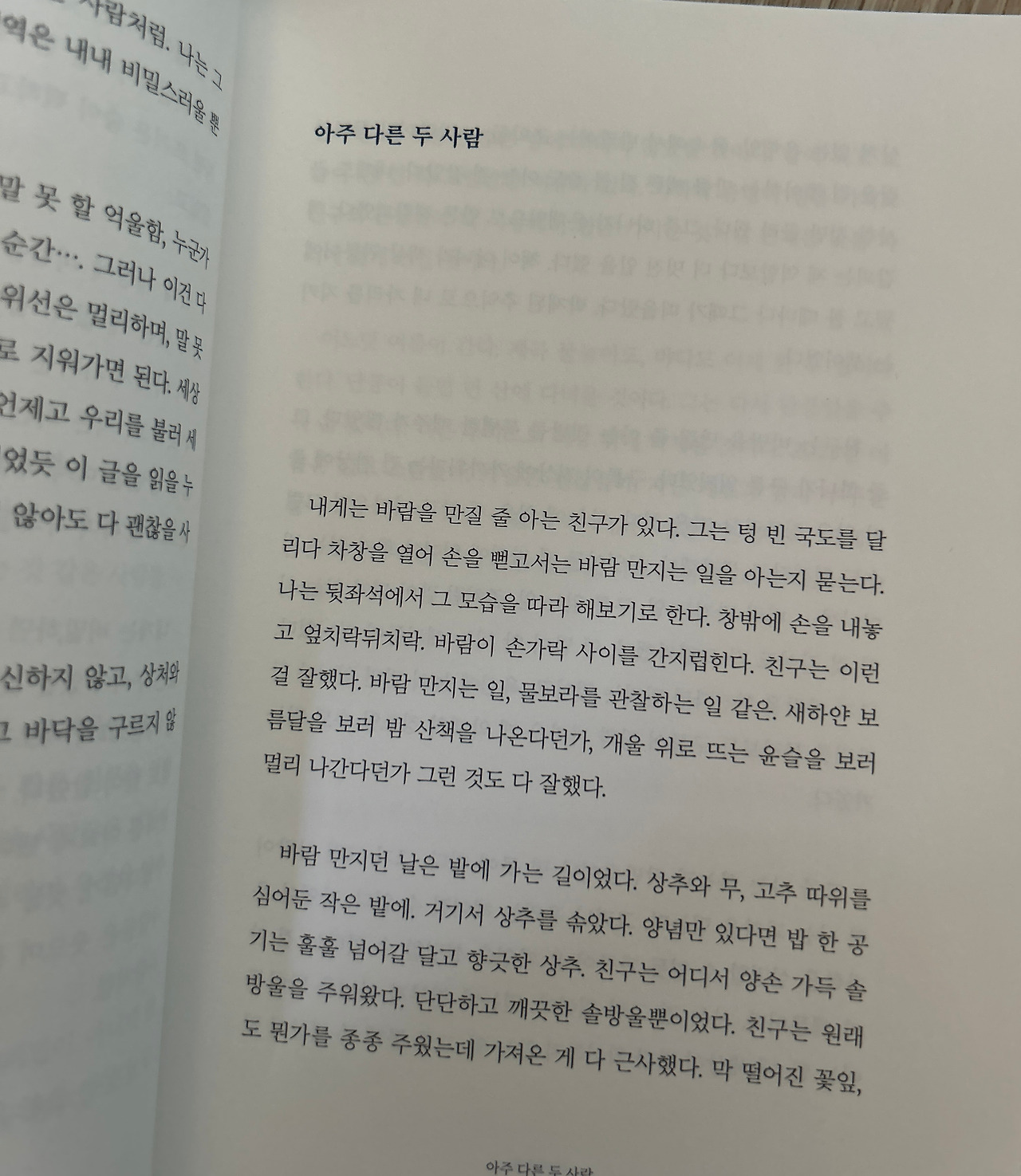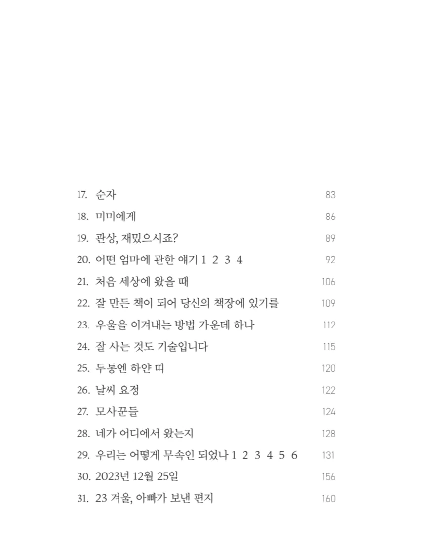 사실 한 권의 책을 내니까 제게 있던 무언가를 지워낸 기분입니다. 제 예상과는 다른 기분이에요. 가슴이 채워지고 커졌다는 생각보다 나를 한 겁 벗겨낸 기분이 듭니다. 어쩌면 인생은 채워가는 게 아니라 지우는 건지도 모른다고, 책이 나오자마자 다시 배운 것 같아요. 계속 글을 쓸 겁니다. 또 다른 나를 적어가며 무언갈 또 지울 거라는 자그마한 예언도 했습니다.