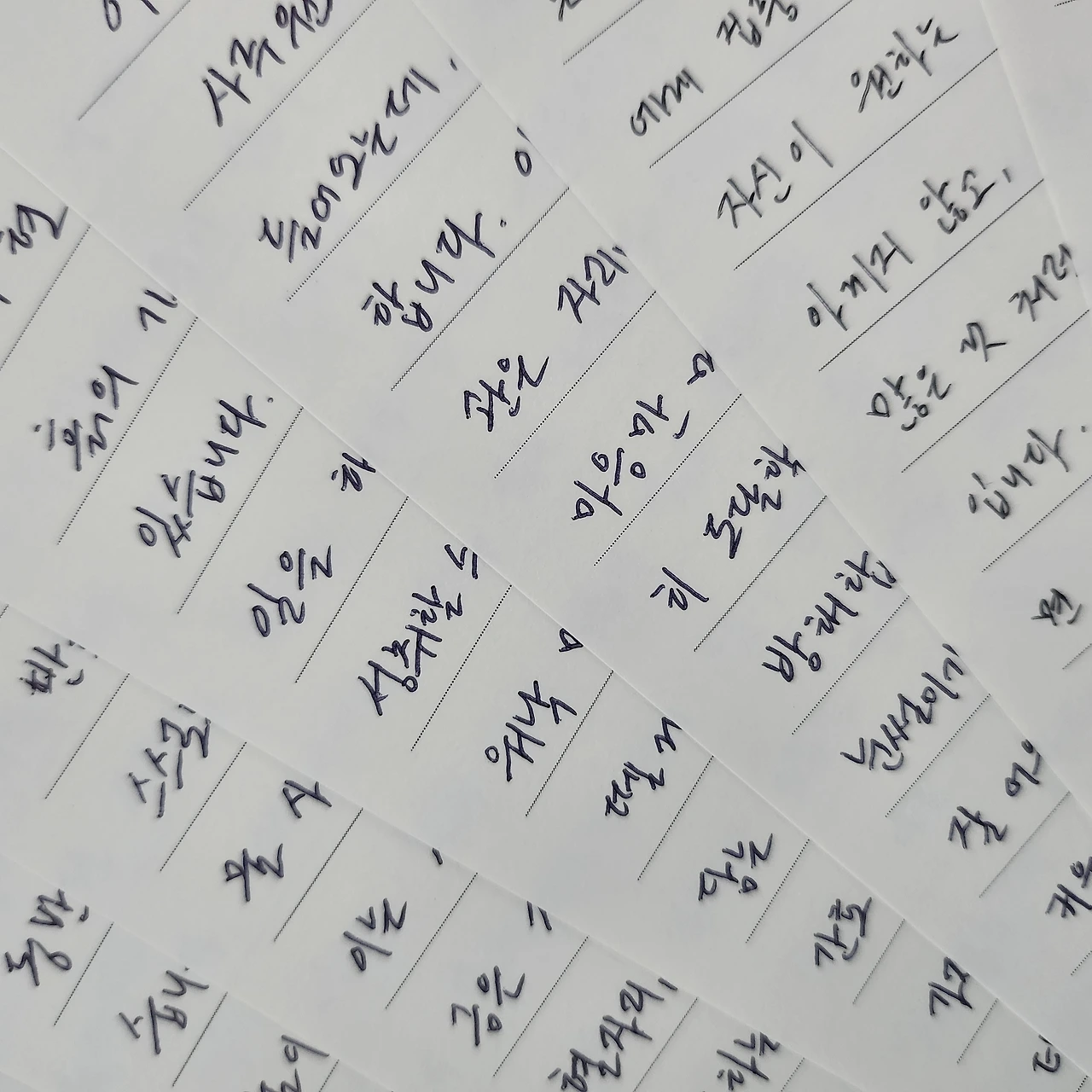 인스타로 선주문을 받았는데 하루 만에 100부가 예약됐습니다. 너무 기뻤어요. 딱 100부만 받고 멈췄습니다. 굿즈를 만들어야 하는데 전부 수기 작성이라서요 (..)