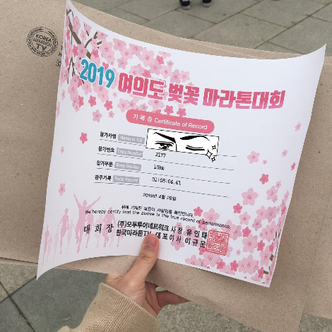 첫 대회에서 피니쉬라인을 밟는 쾌감을 맛본 나와 남자친구는 그 다음해 4월 여의도 벚꽃 마라톤대회에 다시 참가하게 된다.