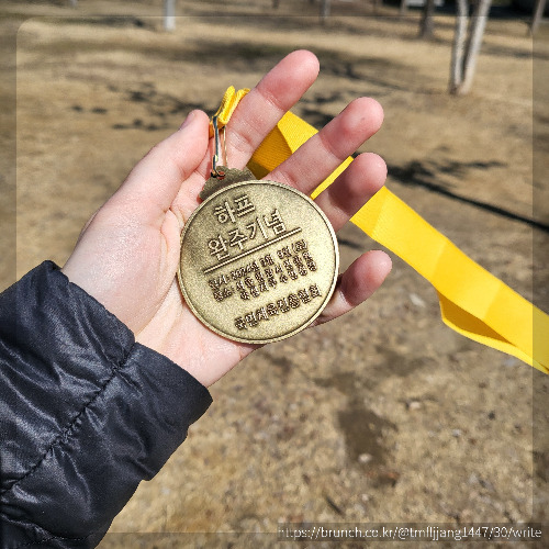 그리고 상상했던 그대로, 나는 해맑게 웃으며 피니시라인을 넘었다.