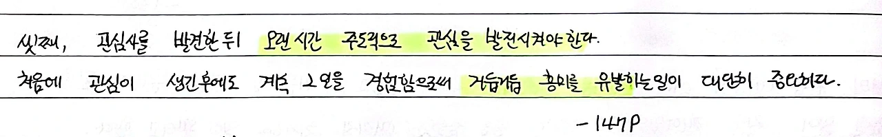 “관심사를 발견한 뒤 오랜 시간 주도적으로 관심을 발전시켜야 한다.
