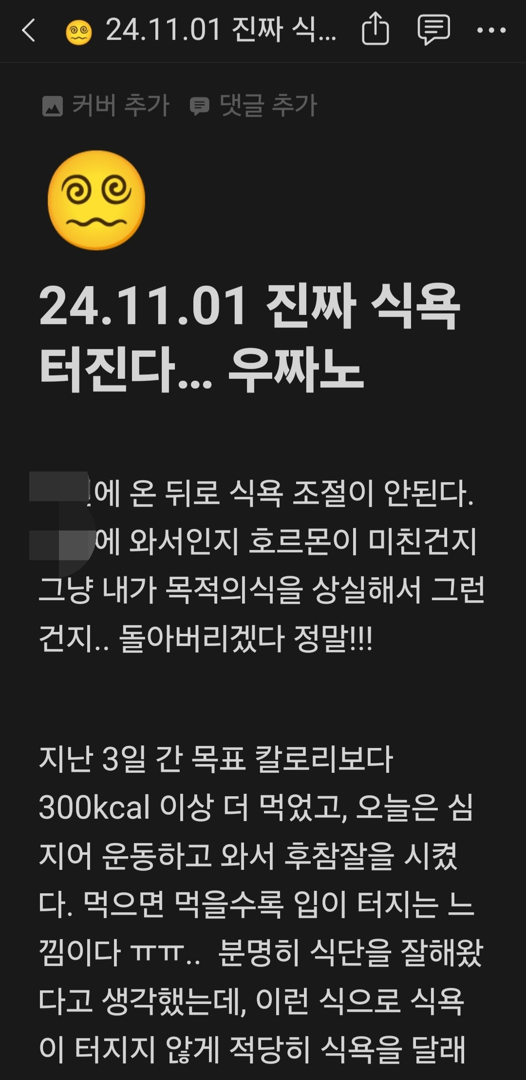 식욕 터져서 멘붕인 상태에서 쓴 글