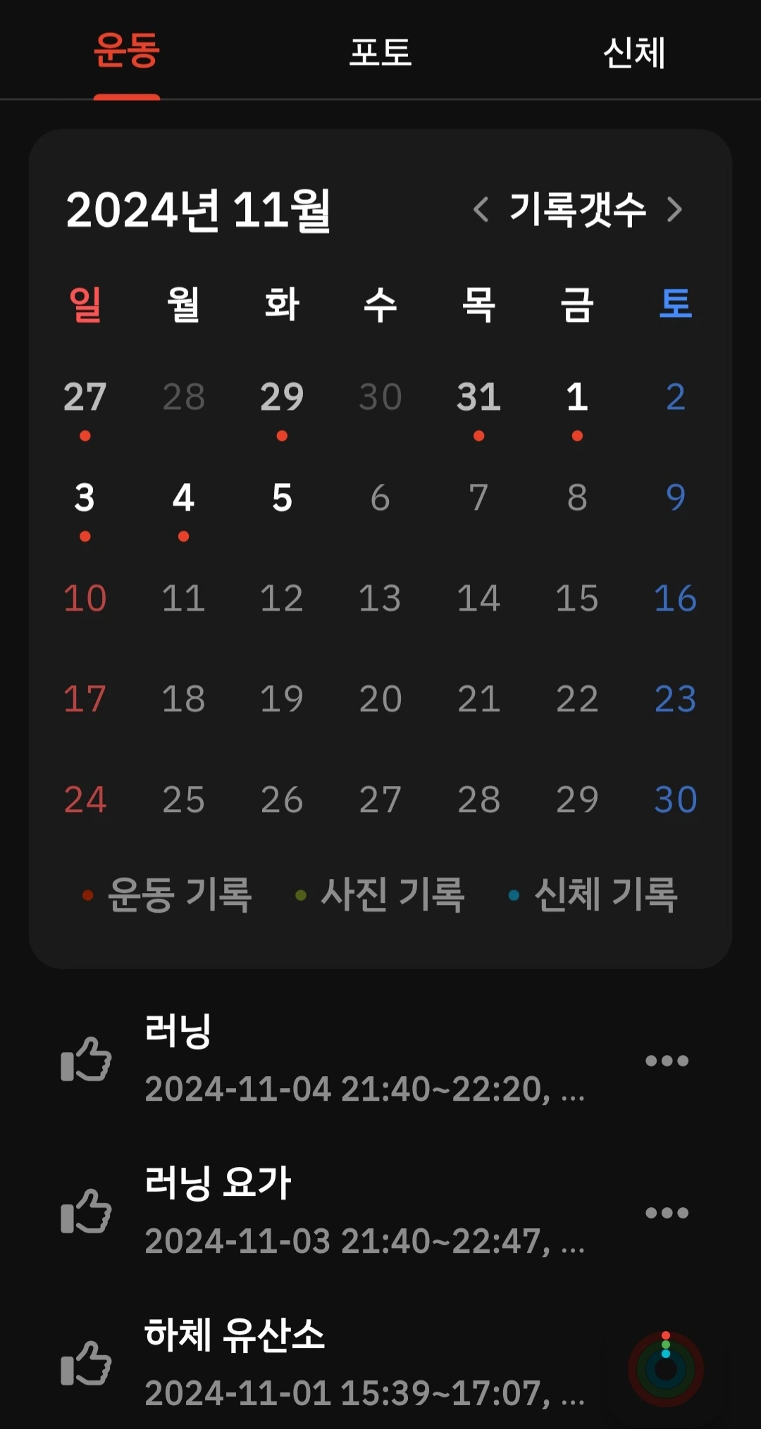 본가에 내려온 후 7일 중 5일을 운동했네요