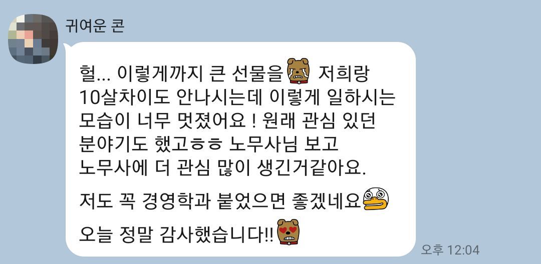 동시에 공기업 직원으로서 소임을 다하느라 잠시 내려놨던 '공인노무사'로서의 나도 잠시 돌아왔다. 서른 명의 동생들이 자신의 주휴수당을 계산할 수 있게 된 것만으로도 뿌듯하고 보람찬 시간이었다. 잊고 있던 내 전문성과 커리어적 가능성을 확인한 시간은 너무나 가치있었다.이제 한동안 딴 생각 안 하고 회사생활 열심히 할 수 있을 것 같다(?)