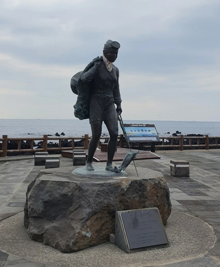 학교 정문과 작은 공원 사이에 사는 소녀상은 겨울만 되면 목도리, 장갑, 모자 같은 방한 용품을 선물 받는다. 학생들이나 시민들이 전하는 마음의 표현이다. 우리는 그런 소녀상을 보며 과거의 고통스러운 기억과 살아남은 분들의 목소리를 잊지 않기로 약속했다. 그리고 온기를 나눠 받았고 눈이 쌓이면 털어주기도 했다. 그런 사람들의 마음은 어딜 가나 비슷한가 보다. 이곳의 잠녀상에도 스카프가 둘러져 있는 것을 보면 말이다.