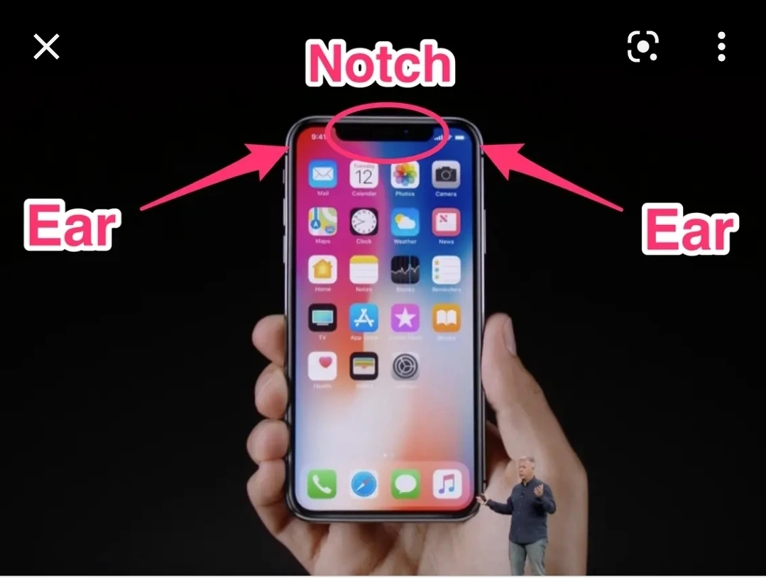 꼭 V자 모양으로 들어간 것이 아니더라도, 이렇게 아이폰의 윗부분처럼 살짝 아래로 내려가 있는 부분을 Notch 라고 칭한다는 것을 알아냈다.
