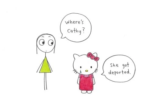 "1945 년 벨기에에서 무스티가 태어난다. 1955년에 덴마트에 미피라는 토끼가 태어난다. 일본에서 헬로키티가 탄생하고 몇년 후인 1974년에 그녀의 친구 케시가 나타난다. 2004년, 한 일본인 블로거가 어쩌면 헬로키티는 무스티의 카피일지도 모른다는 이야기를 한다. 미피를 탄생시킨 아티스트는 키티가 미피의 카피라고 생각한다. 암스트르담 법정은 캐시가 미피의 저작권을 침해한다며 키티상품을 네덜란드, 벨기에, 룩셈브루크에서 판매금지를 시켰다. 산리오는 판정에 동의할수 없다며, 특허권 침해는 일어나지 않았다고 주장한다."
