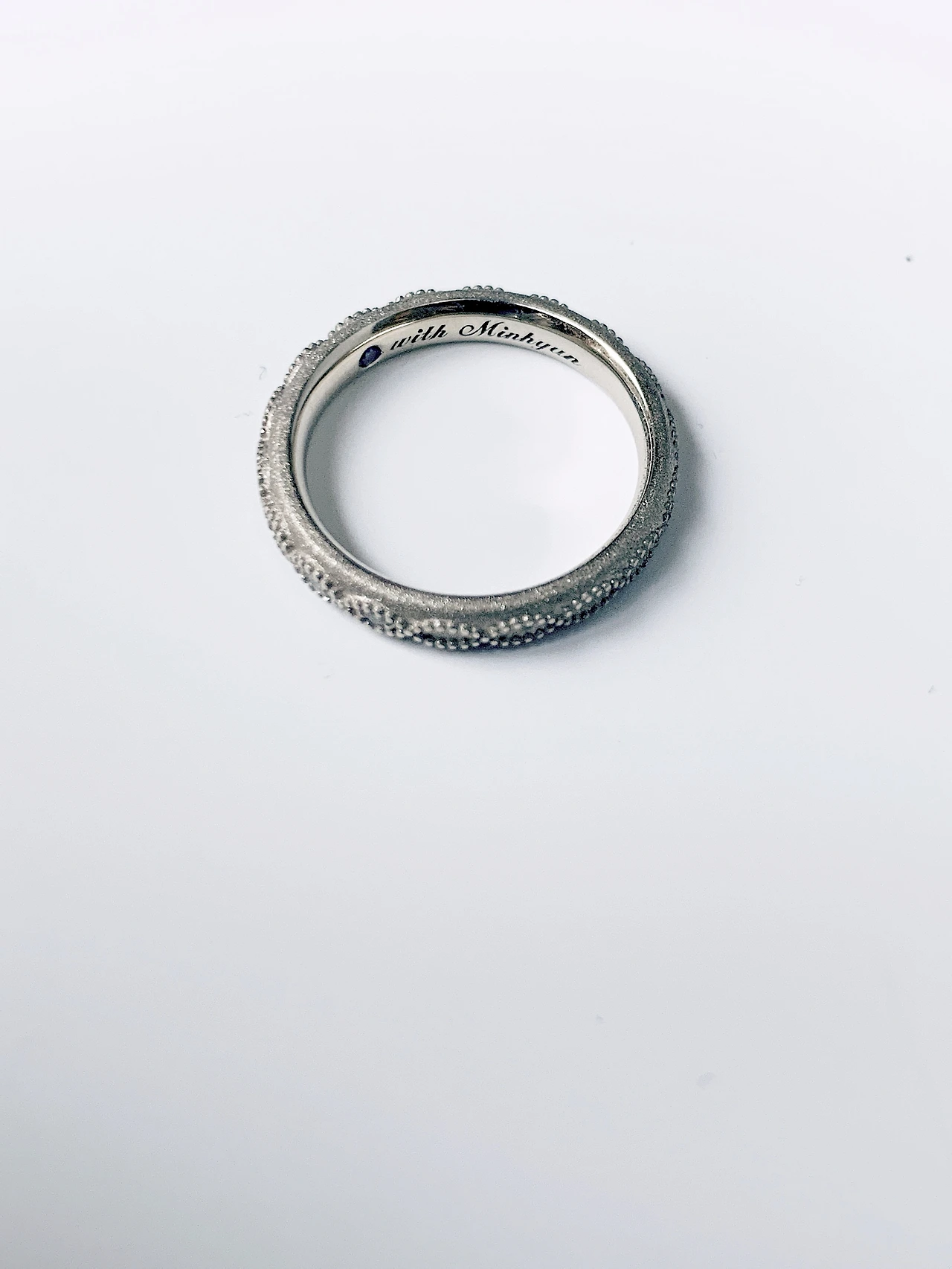 반지 안쪽에 새기는 문구는 많은 경우 결혼 날짜를 새기지만, 우리는 식을 안 하기 때문에 날짜를 넣기는 애매해서, 서로의 이름을 반지에 'with **'로 새겨서 늘 함께 있는 것처럼 하자고 제안했다.