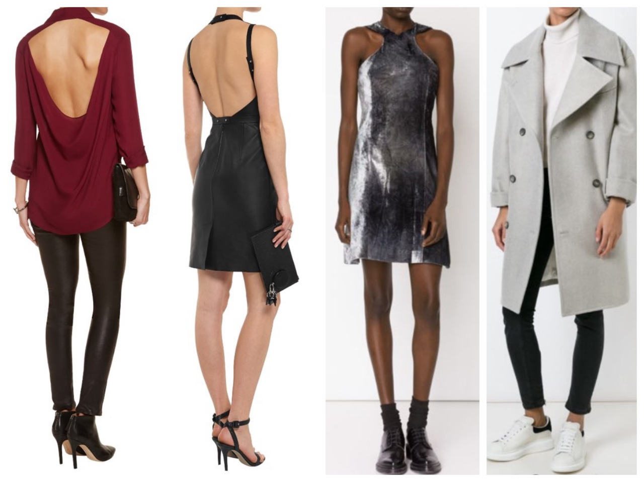 오픈 백의 가죽 미니 드레스, 버건디 컬러의 백리스 원피스 룩. 그녀는 백리스의 반전 매력을 선망한다. 여배우의 시상식 룩에서나 볼 법한 벨벳 소재의 실버 색상의 드레스 룩도 포함되어 있었다. 역시. 성취자형 인간답게 돋보이고 싶은 욕망이 있다.