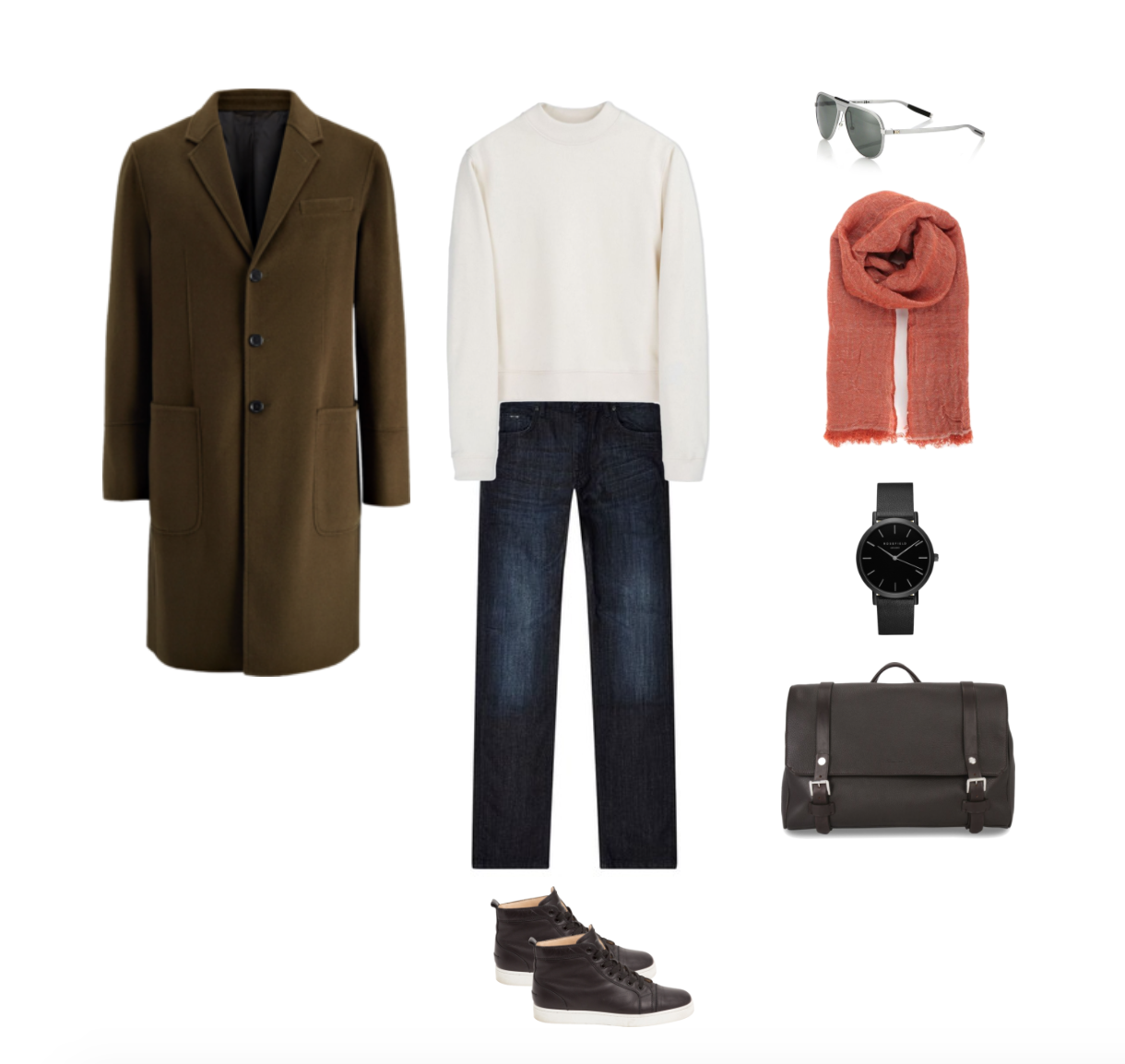 그의 옷장 속 외투는 코트가 주류를 이루었다. 코트를 좀 더 멋지게 입기 위한 아이템을 찾기로 했다. 사실 특별한 것이 없다. 디테일 없는 백지 같은 아이템을 갖추는 것이 가장 기본.