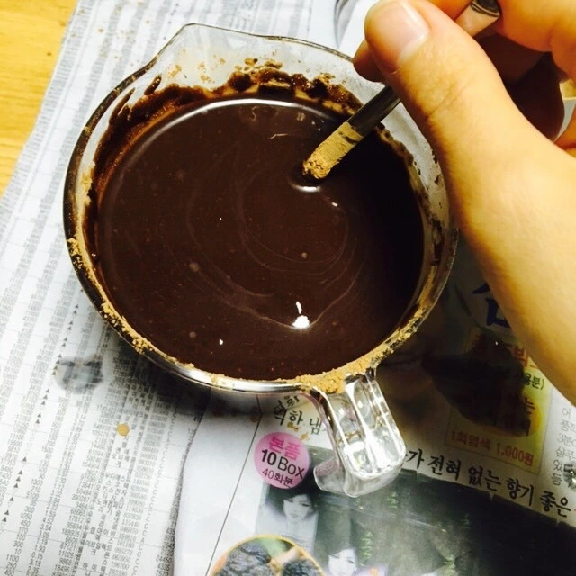 카카오가루로 초콜릿 맛과 색을 냅니다.