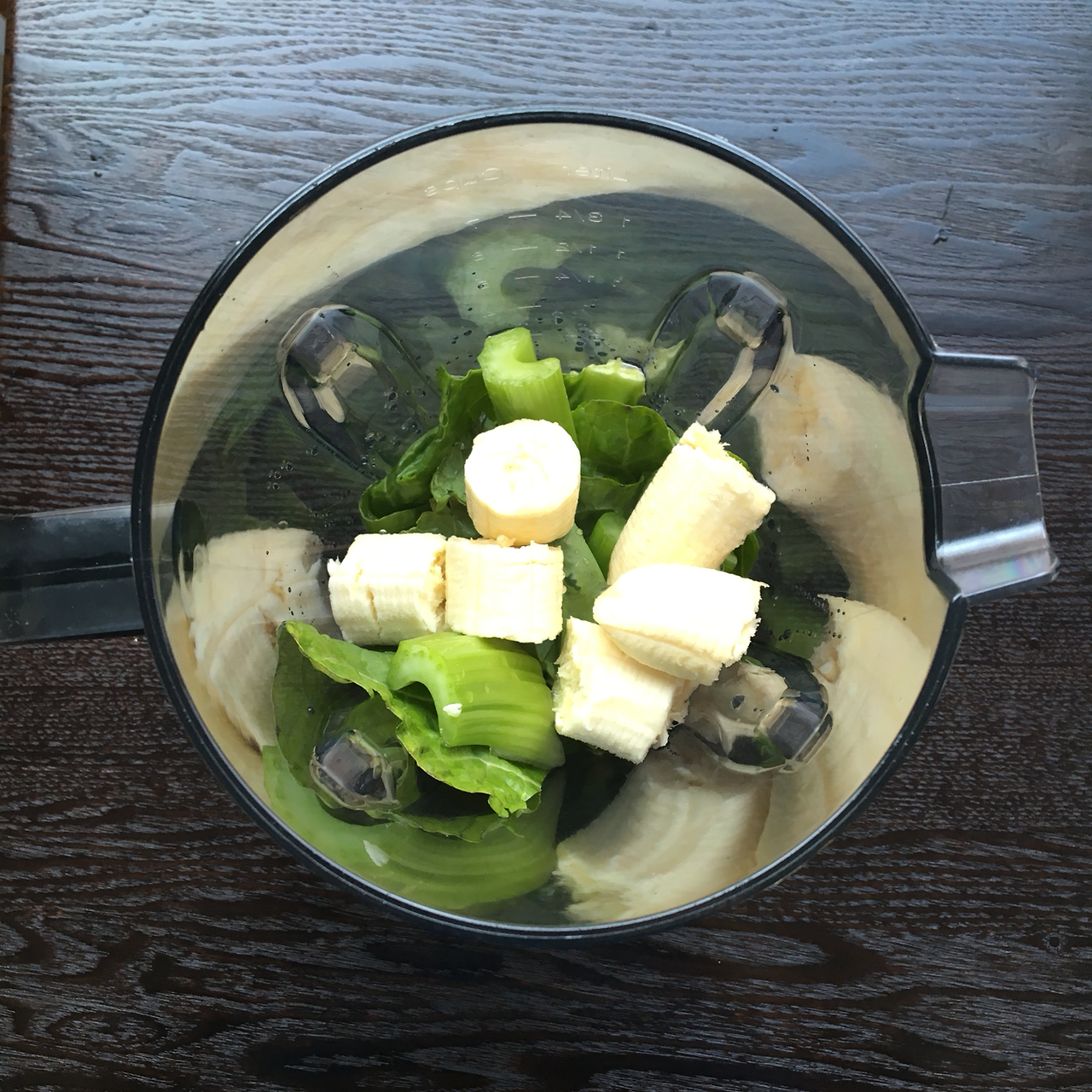 재료 : 즙용 케일 2장 (또는 일반 케일 5-6장) , 코코넛워터 1/2 , 샐러리 1/2 , 바나나 1개