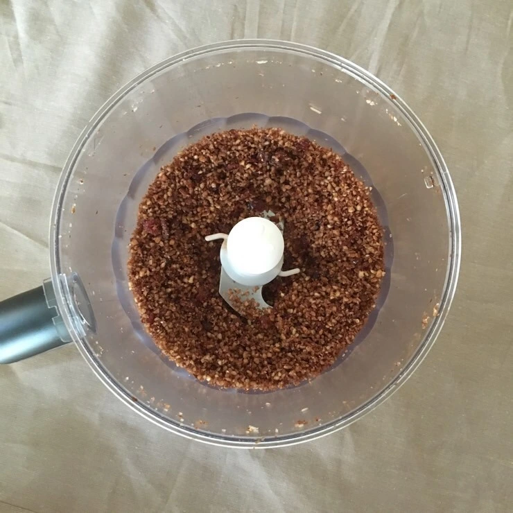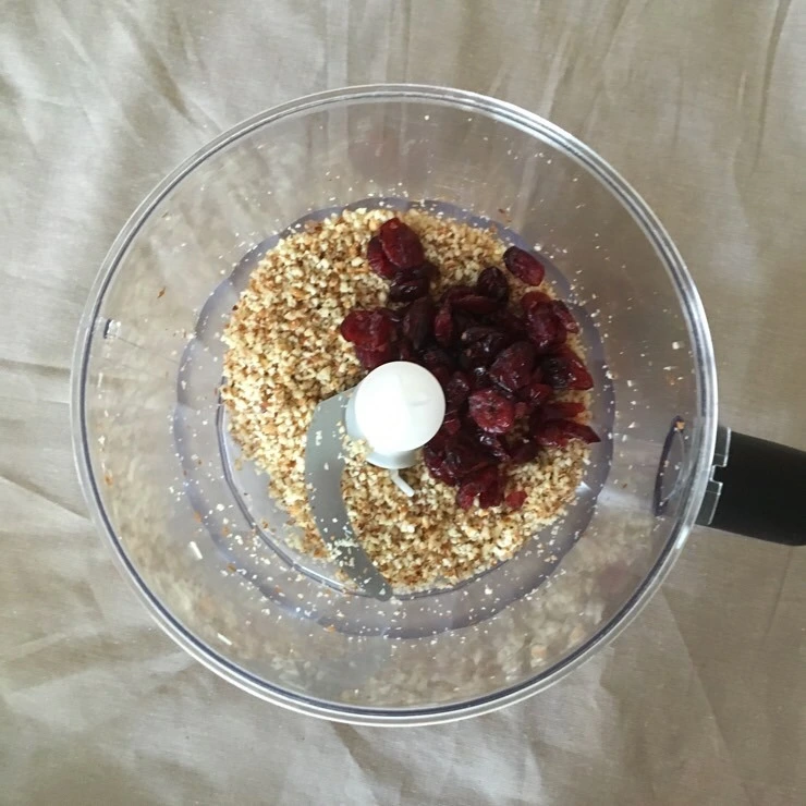아몬드 1/2 컵 & 크랜베리를 푸드프로세서에 갈아주세요.