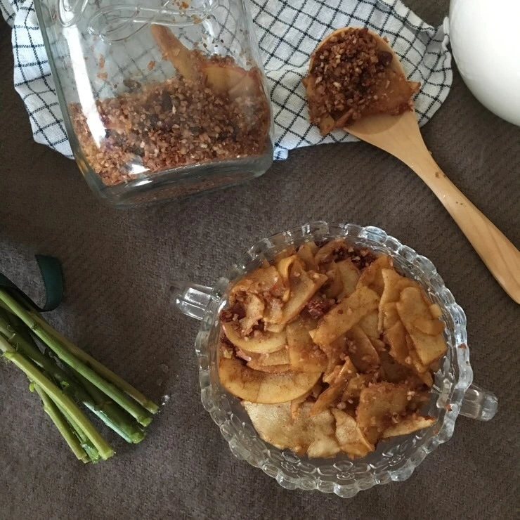 채 썬 사과에 아가베시럽 (메이플시럽, 꿀 등 대체 가능) 1T