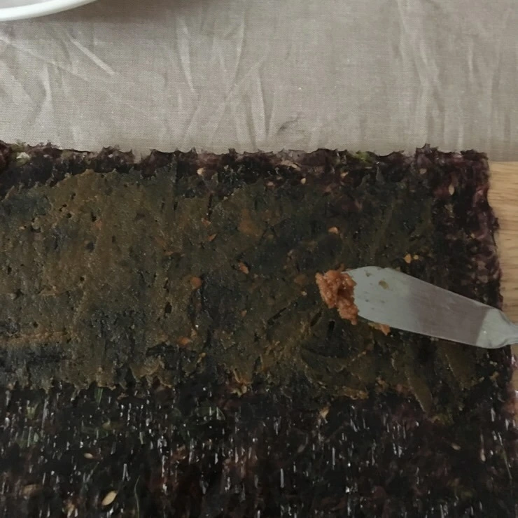 된장소스를 윗부분에 1/3정도 얇게 펴발라 주세요