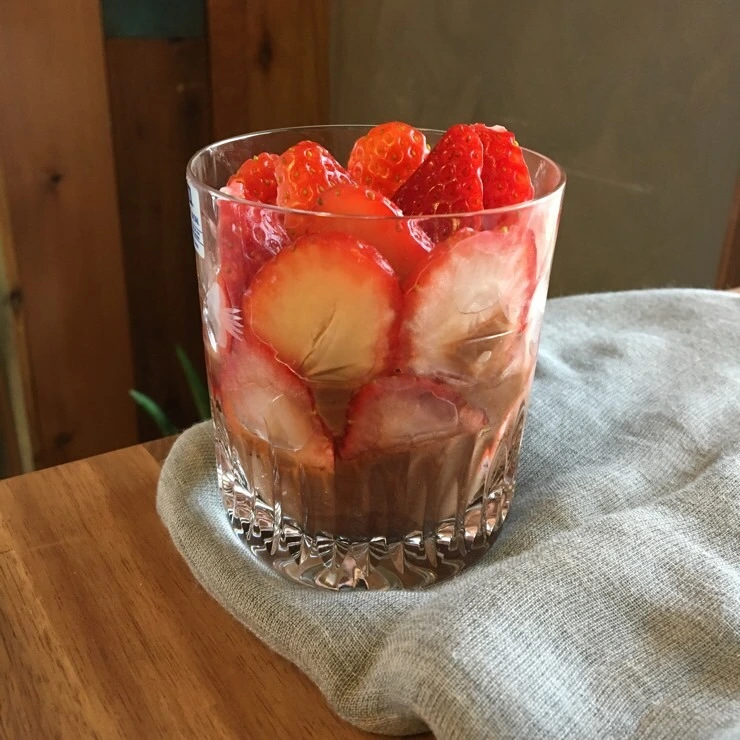 딸기스무디는 딸기&바나나&물조금만 갈아줬어요