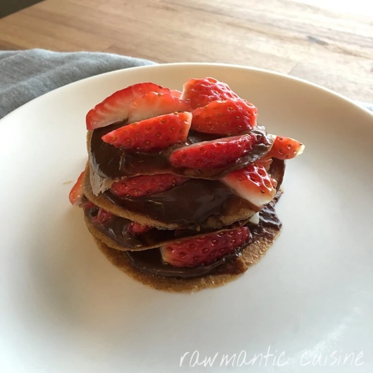 반으로 접어 딸기 스무디를 뿌려주었어요 :-)