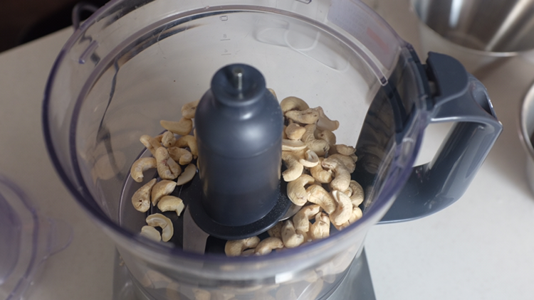 2. 캐슈넛 1컵을 푸드프로세서에 넣어 갈아주세요