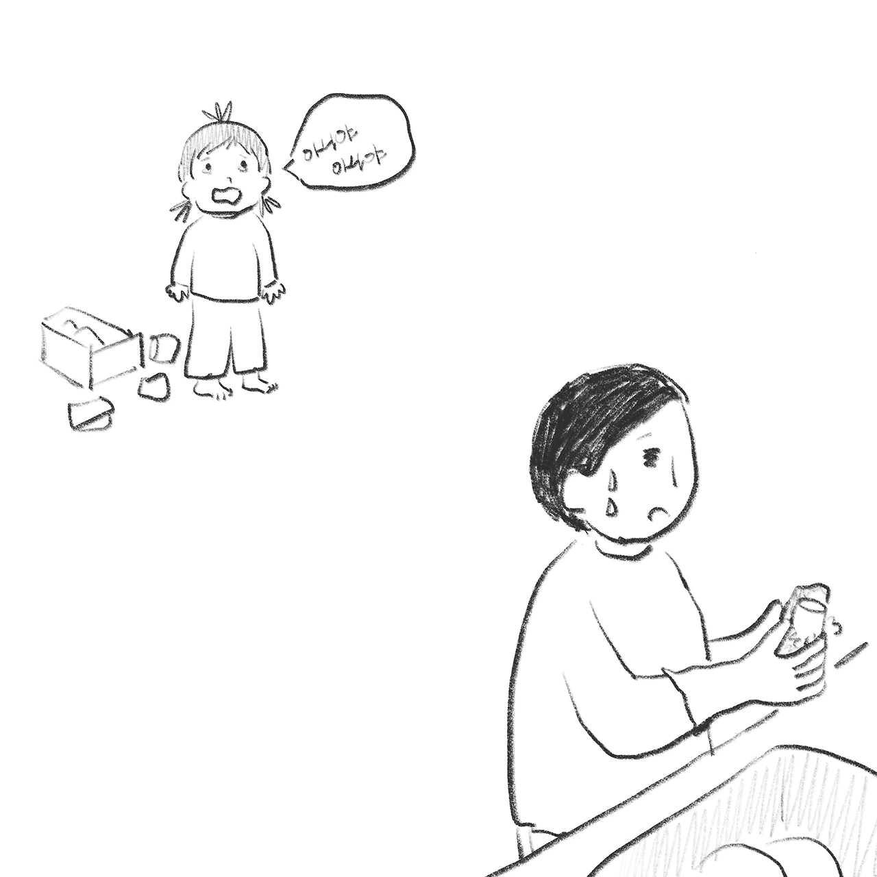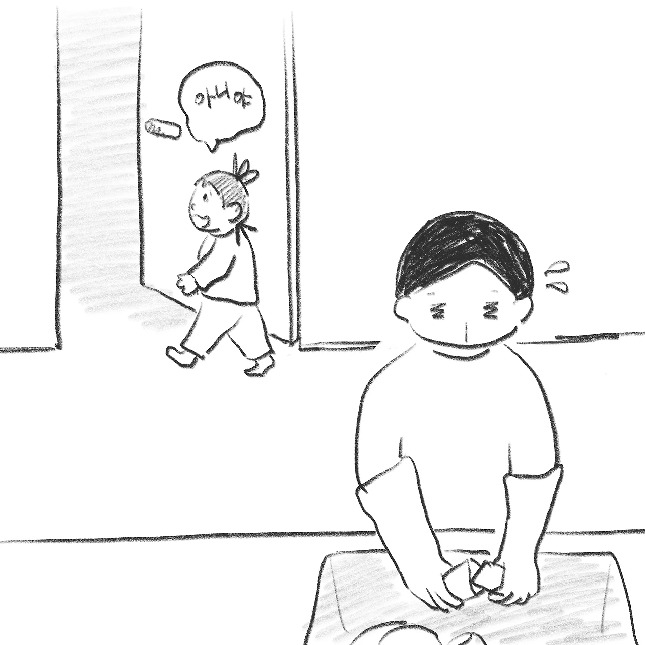 아이는 내가 주방에 있는 걸 싫어한다. 시간이 여유로우면 일을 멈추고 아이에게 가지만, 어쩔 수 없이 일을 해야 할 때가 있다. 그럴 때 아이는 방에 들어가 문을 닫고 나를 부른다. 아직 방 문을 혼자 열 수 없기에 내가 가야지만 아이가 나올 수 있다. 언제나 자신의 옆에만 있어주기를 바라는 아이. 이 시기도 한때라는데, 언젠가는 저 방문을 닫고 나를 부르지 않게 되는 날이 오겠지. 정말 그렇게 된다면 조금 슬플 것 같다.