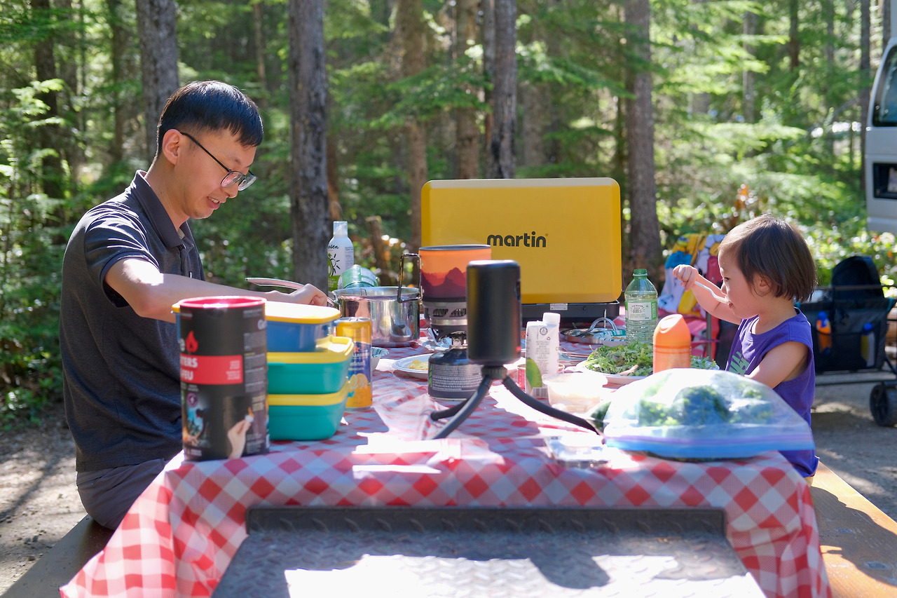 캠핑을 하면서 맛있는 것도 먹고 자연의 청량함을 즐기는 것, 너무 좋지만, 가장 큰 장점은 세상의 소리와 잠시 멀어질 수 있다는 것이다. 인터넷 ZERO ZONE. 핸드폰을 보면서 빠르게 흡입했던 끼니도 여기서는 재료가 살아있는 음식이 되어 그 식감과 맛이 더욱 선명하게 느껴지고, 화면을 더 자주 보던 나의 시선이 아이에게 고정되어 있으니 아이는 더 이상 놀아달라고 조르지 않는다. 밀착된 공간에서 가까이 느껴보는 아이의 숨결은 더 따뜻하고 진하게 다가온다.
