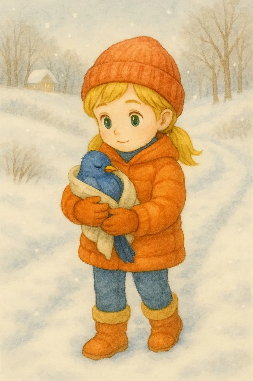 눈밭 한가운데, 파랑새 한 마리가 쓰러져 있었어요.