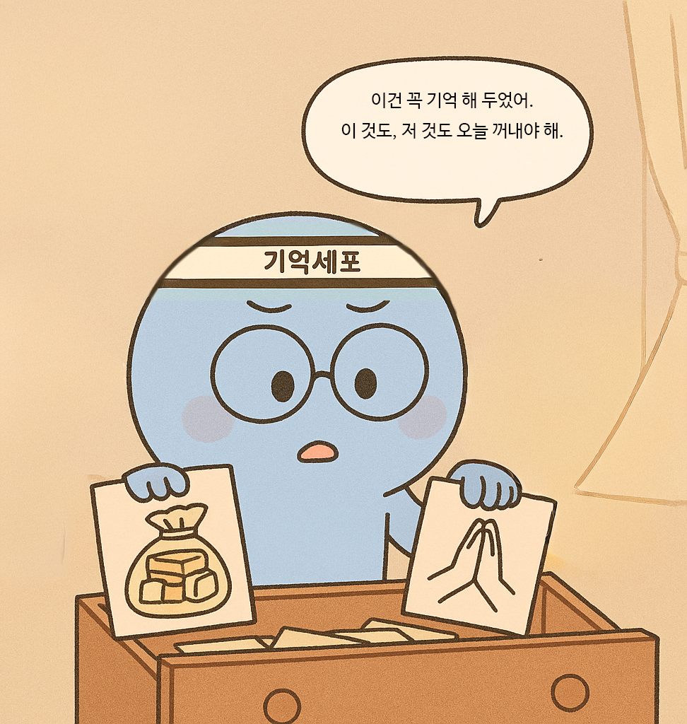 기억세포가 오늘도 조용히 서랍 앞에 섰다.