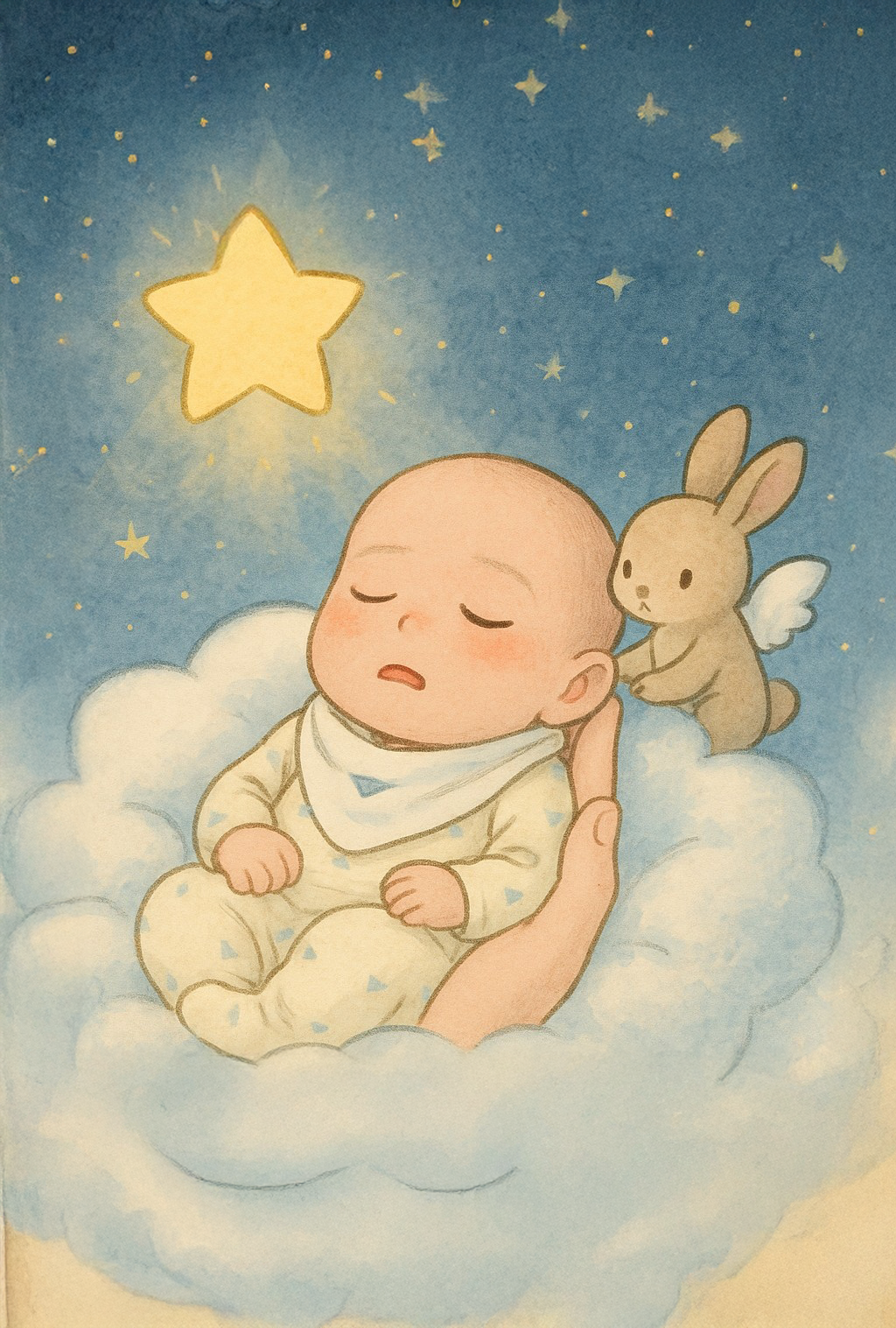 토끼 귀 달린 구름 침대에 누운 지안이는