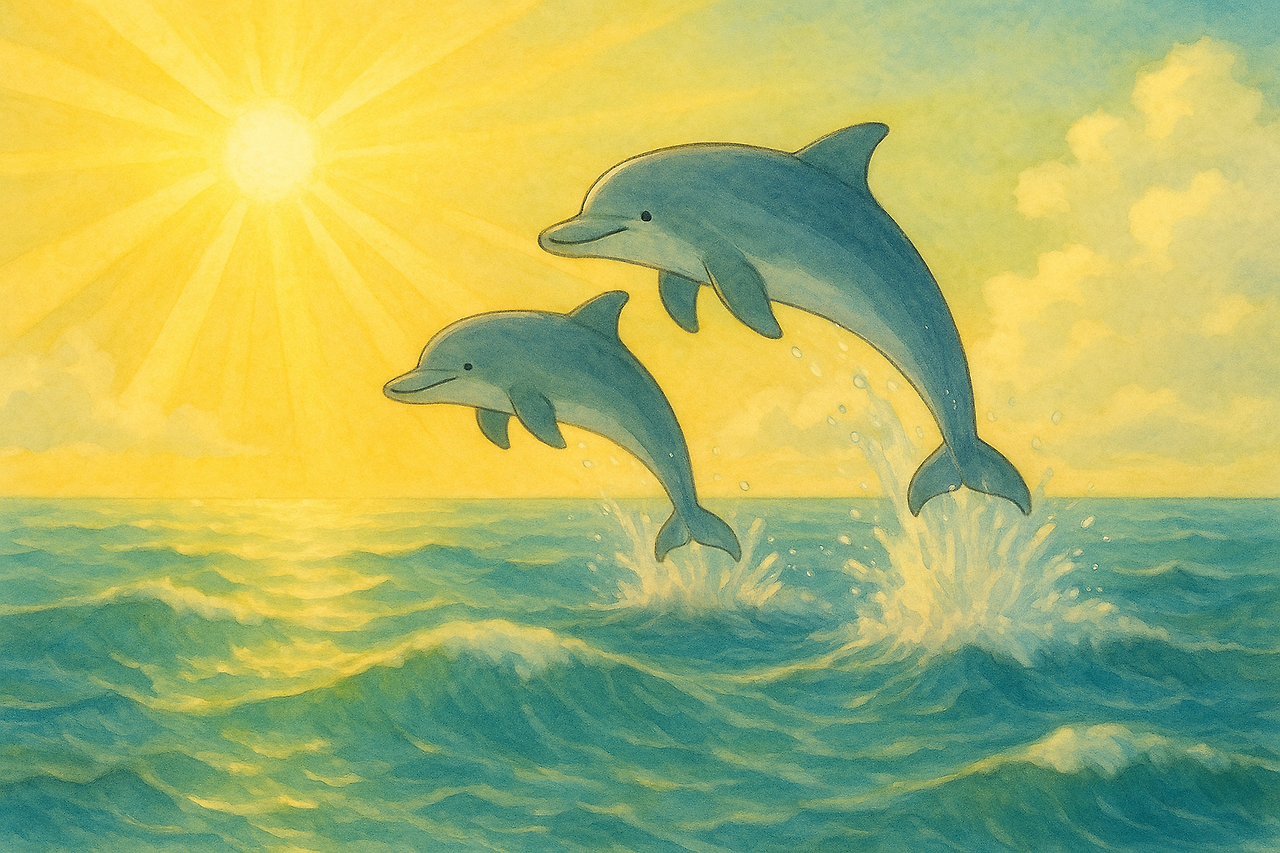 유리는 그 모습을 바라보다가, 푸른 바다 위를 뛰어오르는 두 마리 돌고래를 떠올렸다.