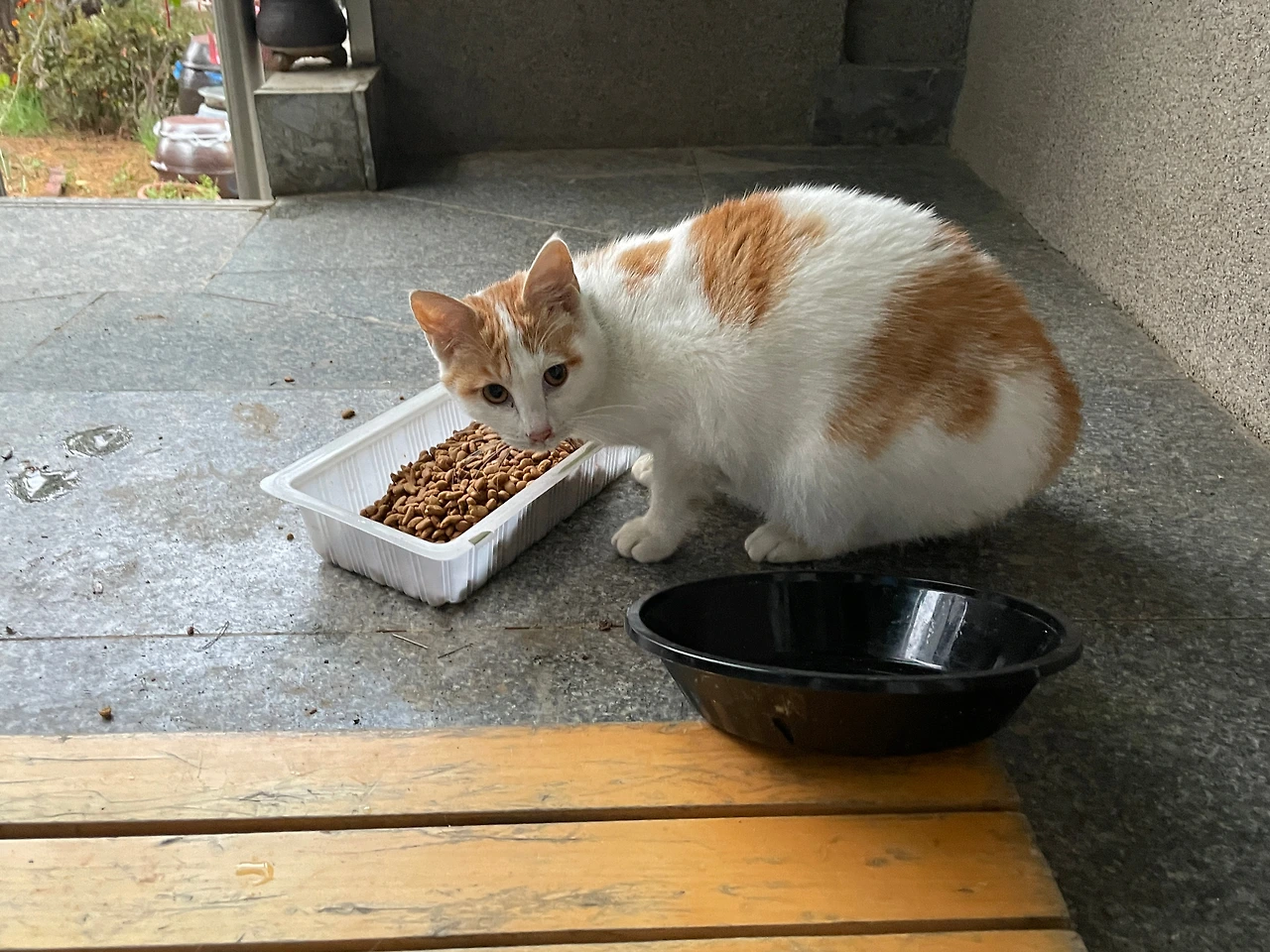 매일 간식 먹으러 오는 냥이를 드디어 만났네요.