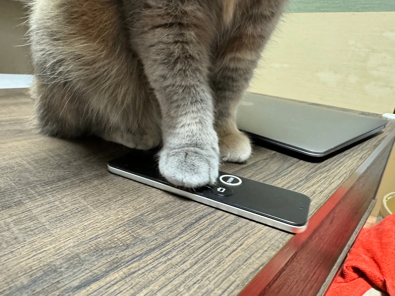 리모컨을 눌러 정지시켜 버리는 냥이님