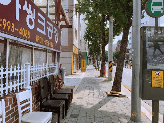 주기적인 사색이 필요할 때마다 도서관에 간다. 집에 있으면 눕기 바쁘고 카페는 노랫소리가 거슬려 사색에 잠길 맛이 나지 않아서다. 도서관은 집에서부터 걸어서 20분 거리에 있다. 사실 걷기만큼 사색에 좋은 행위가 없다고 하지만 남루한 체력을 아꼈다가 사색에 쏟아야 하기 때문에 버스를 탄다. 우리 동네 버스 정류장에는 나라가 설치해주는 의자 대신 누가 갖다 놓았는지 모를 의자 6개가 있다. 2개는 화이트, 2개는 다크 브라운, 2개는 카멜. 나름 골라서 앉을 수 있다. 주로 할아버지나 아주머니들이 여기 앉아서 버스를 기다리는 모습을 종종 목격했다.