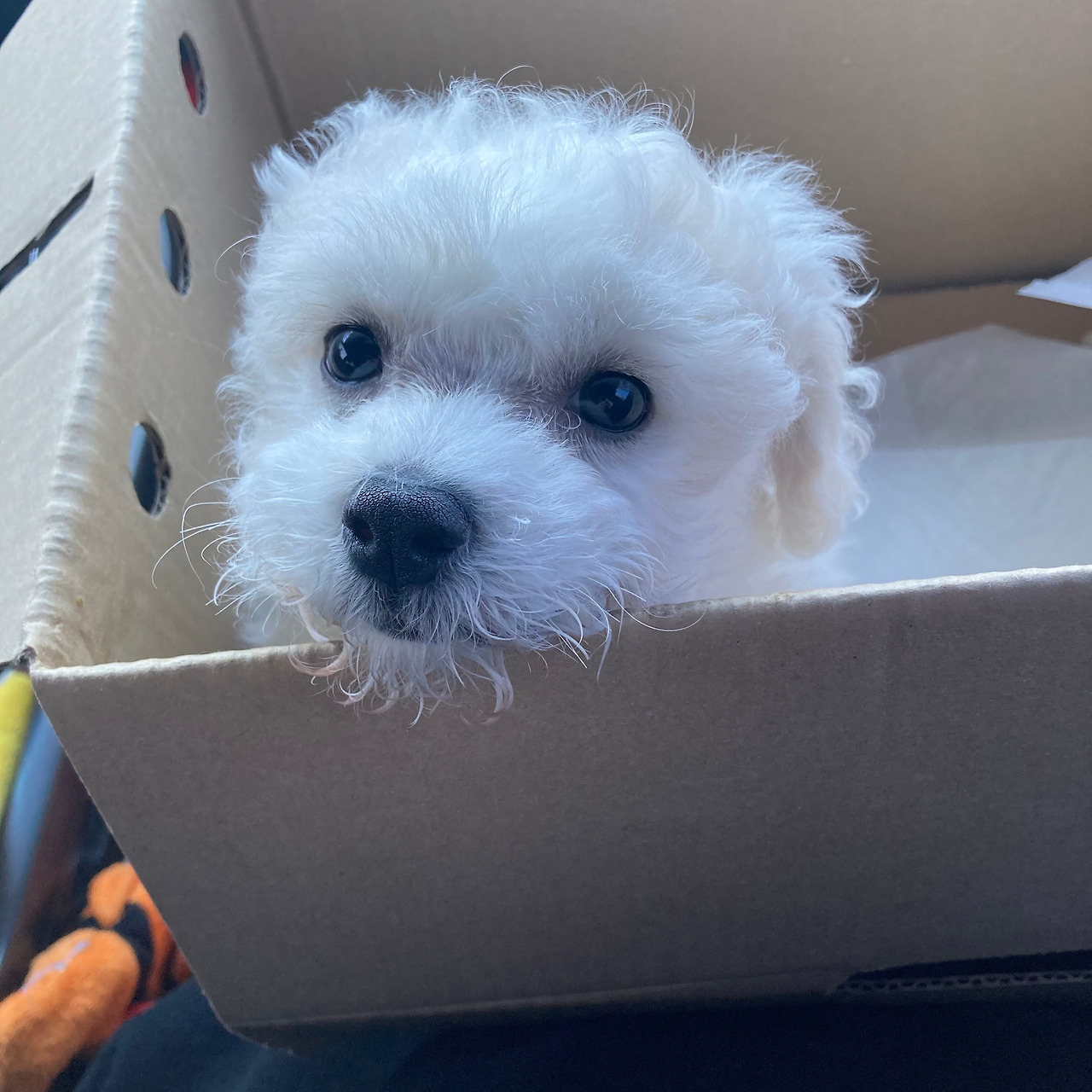 병원 앞을 서성이고 지인들에게 전화를 걸어 조언을 구하고, (왜인지 모름) 펑펑 울다가 보니 두 시간이 흘렀고 정신을 차리니 하얗고 작은 강아지가 상자에 담겨 나를 쳐다보고 있었다. 둘이 떠난 여행이 끝나자 우리는 셋이 되었다.