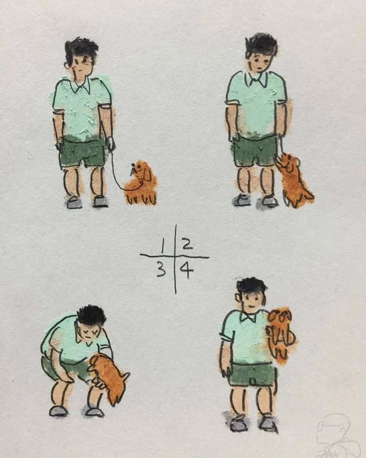 첫 번째 시고르자브종 예삐는 감기에 걸려 2주 만에 무지개다리를 건넜고 두 번째 푸들 몽실이는 엄마의 알레르기가 심해져(새벽에 숨이 막혀 큰일 날 뻔 한 뒤로) 작은 고모를 통해 재 입양되었다. 세 번째 시츄 몽실이는 우리 집에서 새끼 두 마리를 낳고 둘째 미르와 함께 다른 집에 맡겨졌으며(이유는 모른다, 엄마의 뜻에 따랐을 뿐) 내 인생 마지막 강아지라고 여겼던 몽실이 첫째 딸 마루도 어느 날 귀가하고 나니 동네 할아버지 집에 보내져 있었다. 그런 결정을 내린 부모님에게도 분명 이유와 뜻이 있었으리라. 하지만 타의에 의한 만남과 헤어지는 과정을 거치며 "다시는"이라는 다짐으로 상처를, 상처를 준 아이들의 눈을 외면하고 싶었다.