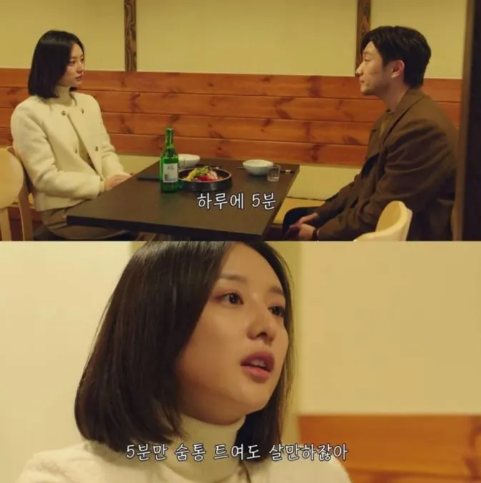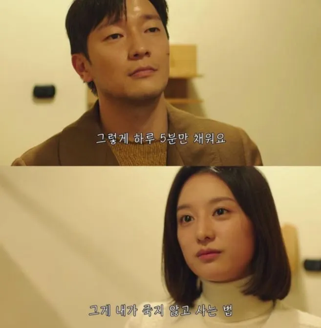 연관되어 떠오른 콘텐츠 클립은 드라마 <나의 해방일지>에서 미정이가 구 씨에게 했던 대사인데 하루에 5분만, 설레는 순간으로 채우면 죽지 않고 사는 방법이 된다고. 이 대사의 맥락 역시 장도연의 말과 유사하다. 행복하려고 살 것이 아니라, 그저 하루에 몇 분 설렌다면 그걸로 살아갈 힘을 얻는다는 것.