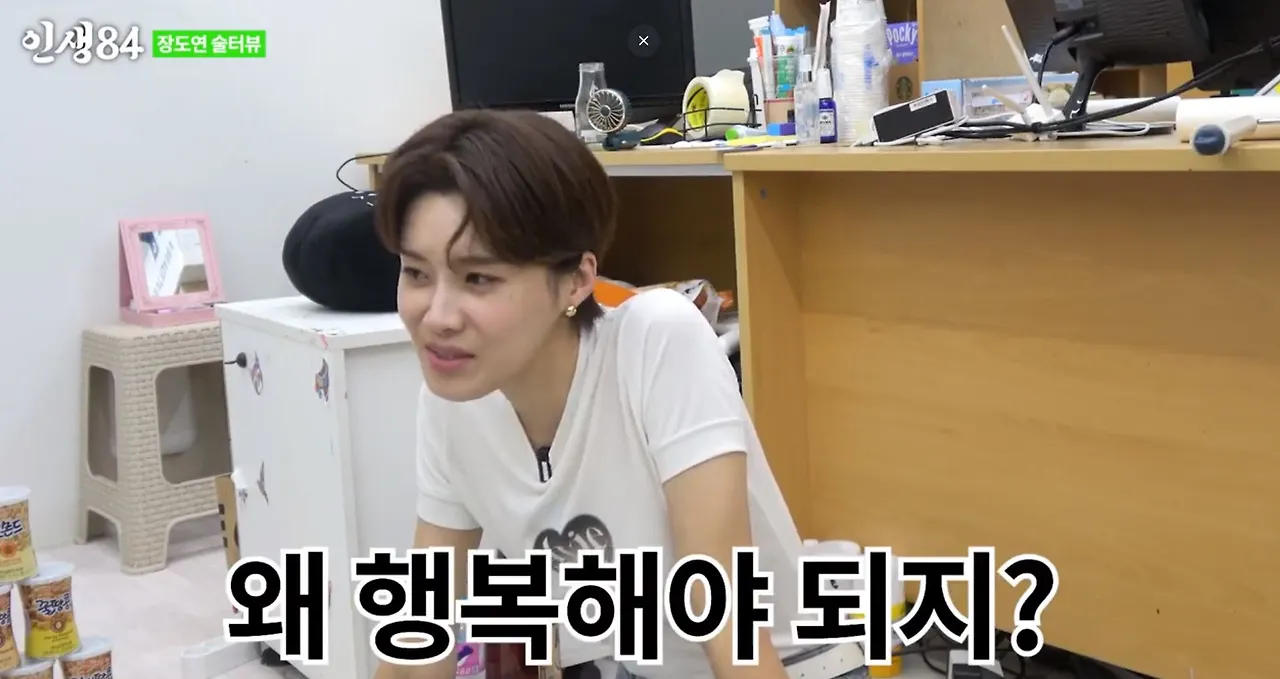 Q. 너에게 행복은 뭐야? A. 나는 행복하려고 하지 않아. 왜 행복해야 되지? 왜냐면 실망할 일이 없잖아, 사람이 마음을 안 다치려면 제일 기본적인 방법은 마음을 쓰지 말래.