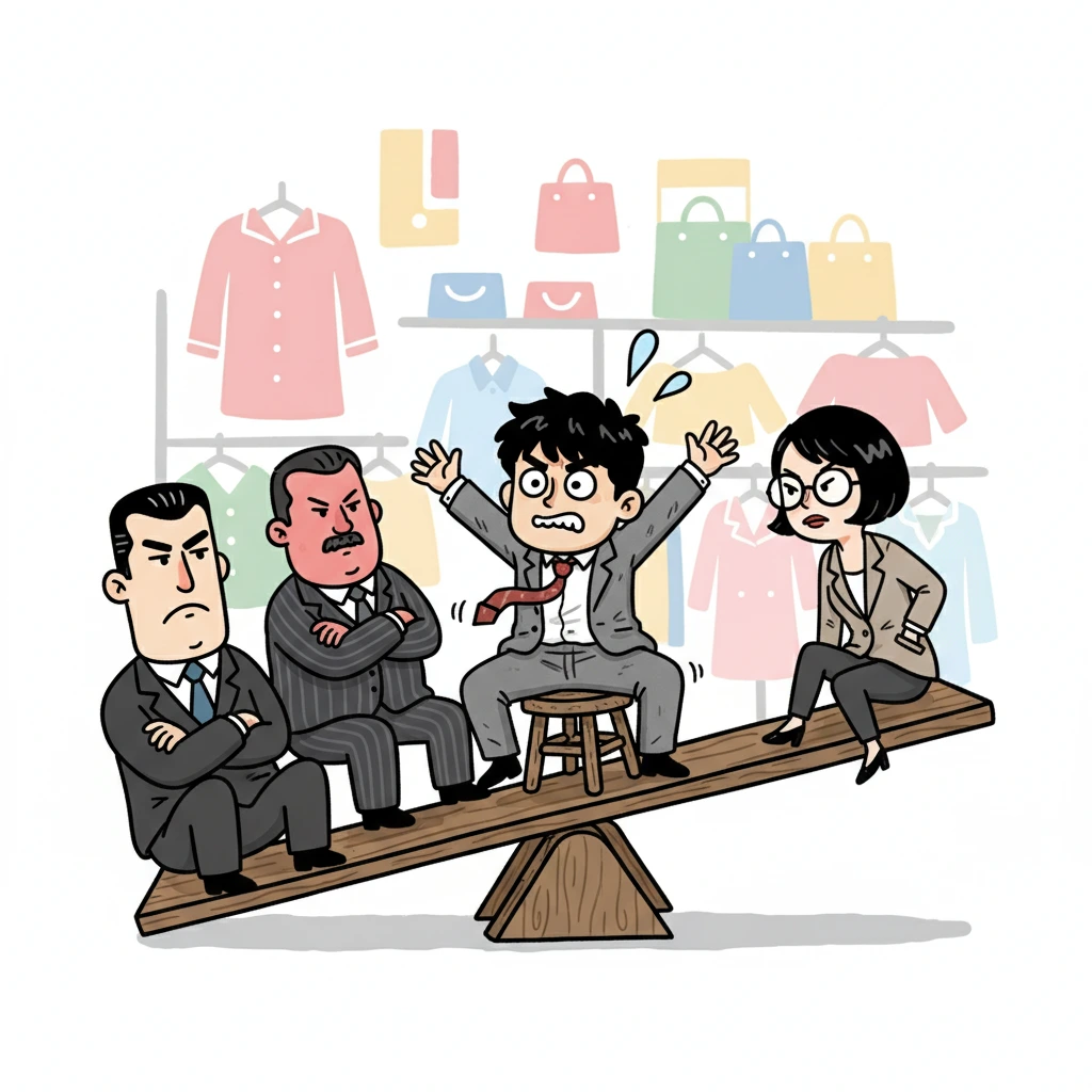 양쪽에서 등 떠미는 백화점 관리자의 슬픈 자화상