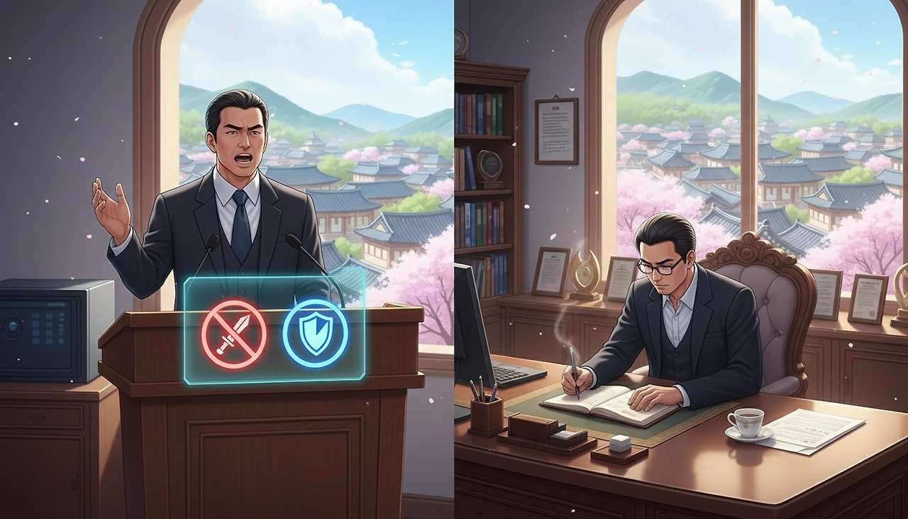 '여당 스피커(류시인)'가 내부에서 공격하고, '야당 수장(김민수)'이 외부에서 옹호를 선언했다. '신중론'과 '정치 공세'라는 두 개의 방패가 동시에 사라진 것이다. 오후 2시.