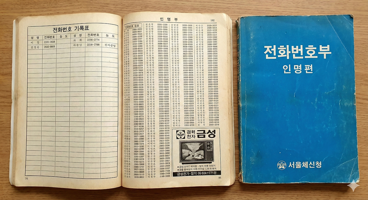 그 시절엔 개인정보 보호법 같은 게 없어서, 파란색 인명편 전화번호부에 세대주 이름, 전화번호가 적나라하게 나와 있었다.