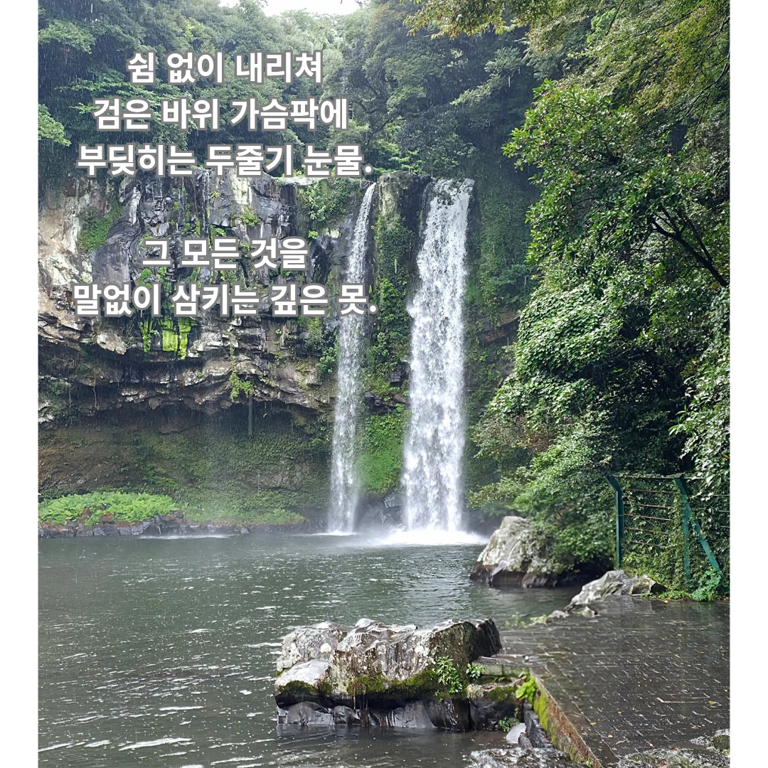 자연의 그 묵묵한 인내 앞에서 인간의 슬픔 또한 언젠가는 저 깊은 못처럼 단단해지지 않을까 조심스레 위로를 건네고 싶었습니다.