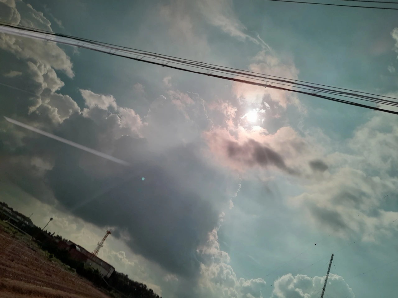 차를 타고 이동하는데 구름 사이로 비친 해가 너무 너무 이쁘다며 사진을 찍었단다.