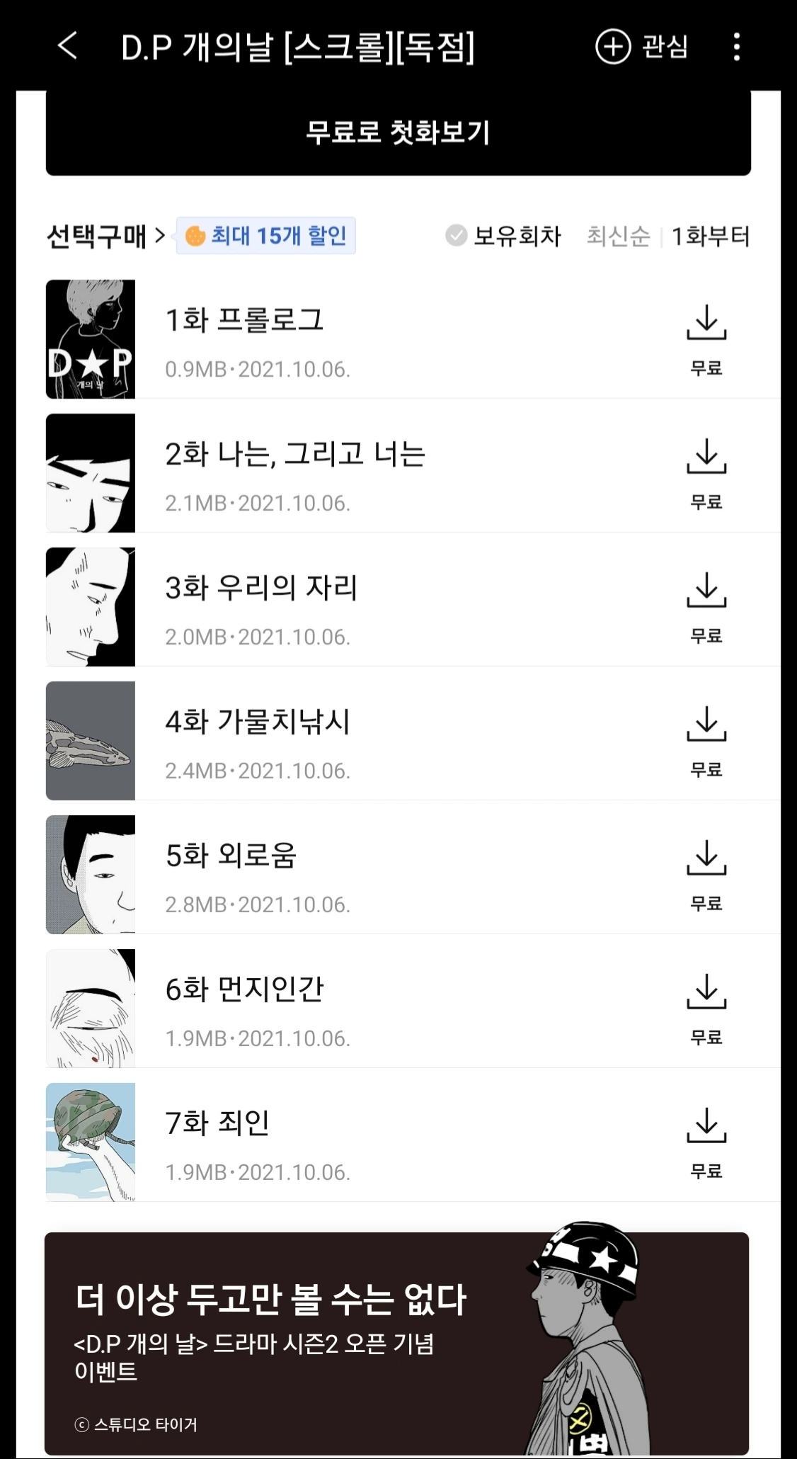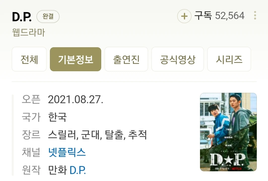 웹툰은 쿠키를 써가며 완독했고, 넷플릭스 드라마로 제작된 DP시즌 1도 모두 재미있게 시청하였다.